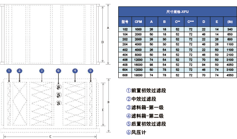 XFU新风过滤系统对粉尘颗粒及气体过滤,具有完整的设计灵活性。